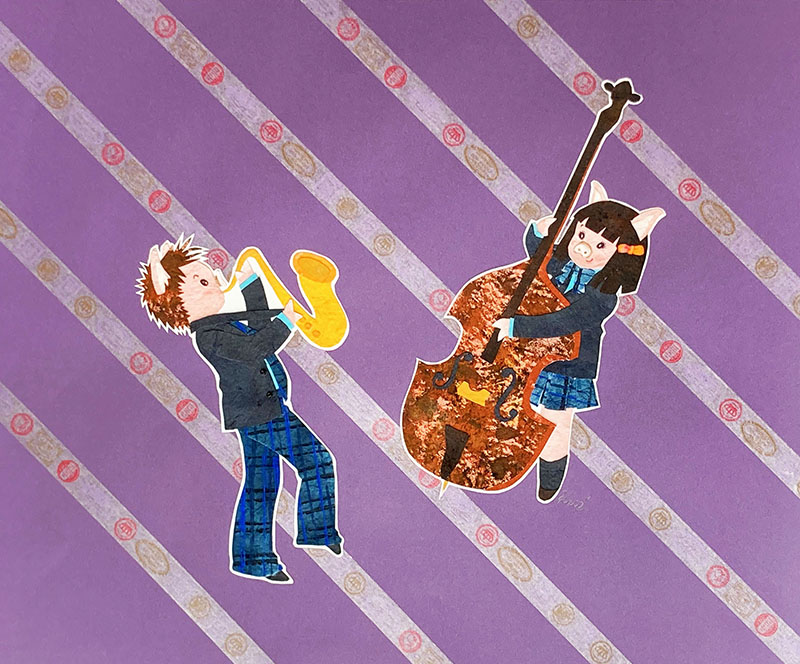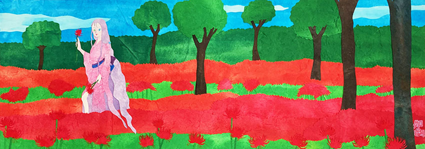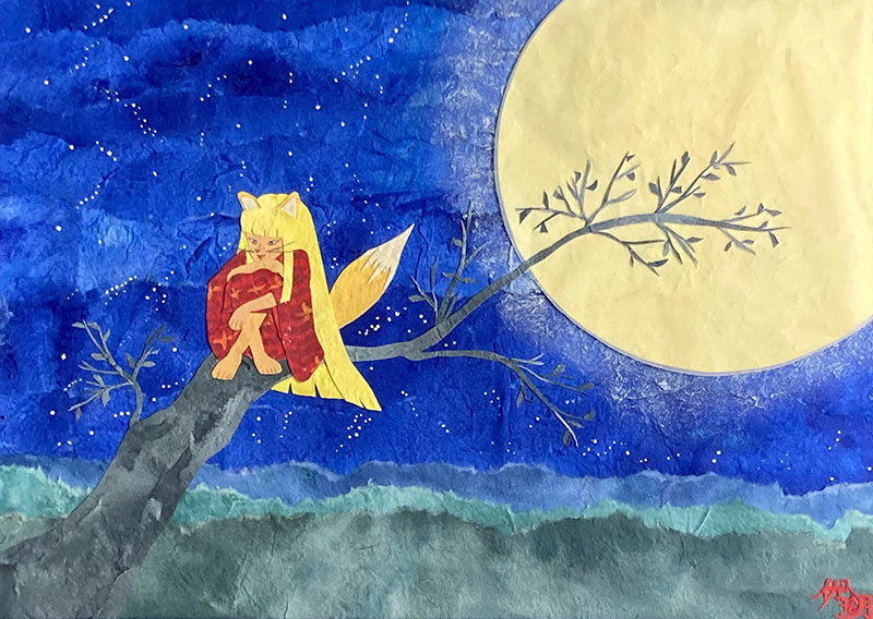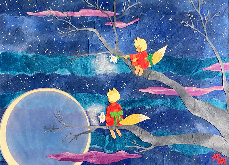 ( 和紙、アクリル絵の具、ケント紙、他 )